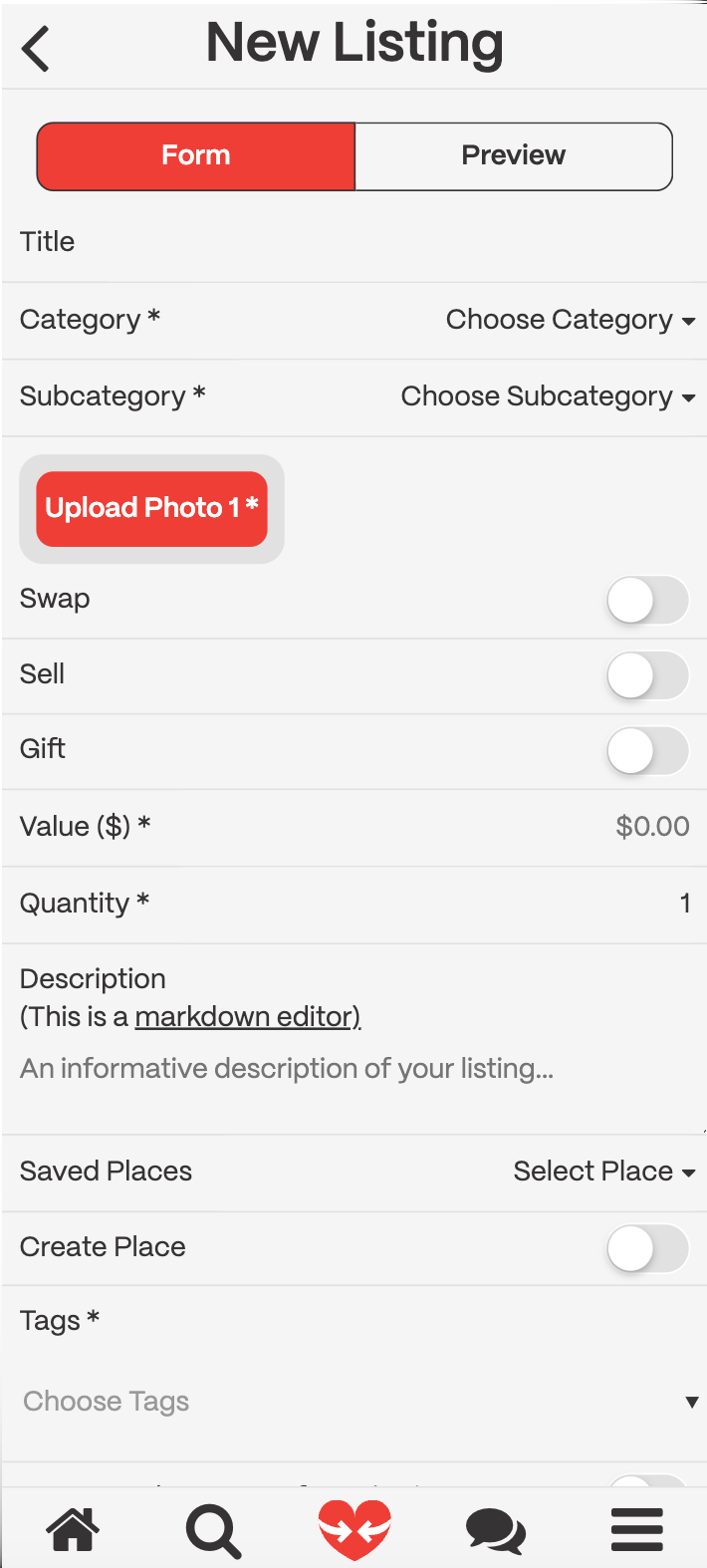 - Fill out the form with the required information. Upload a photo of the item you would like to sell, trade or give away (required). You can also preview the listing before you create it, by clicking on the Preview button.